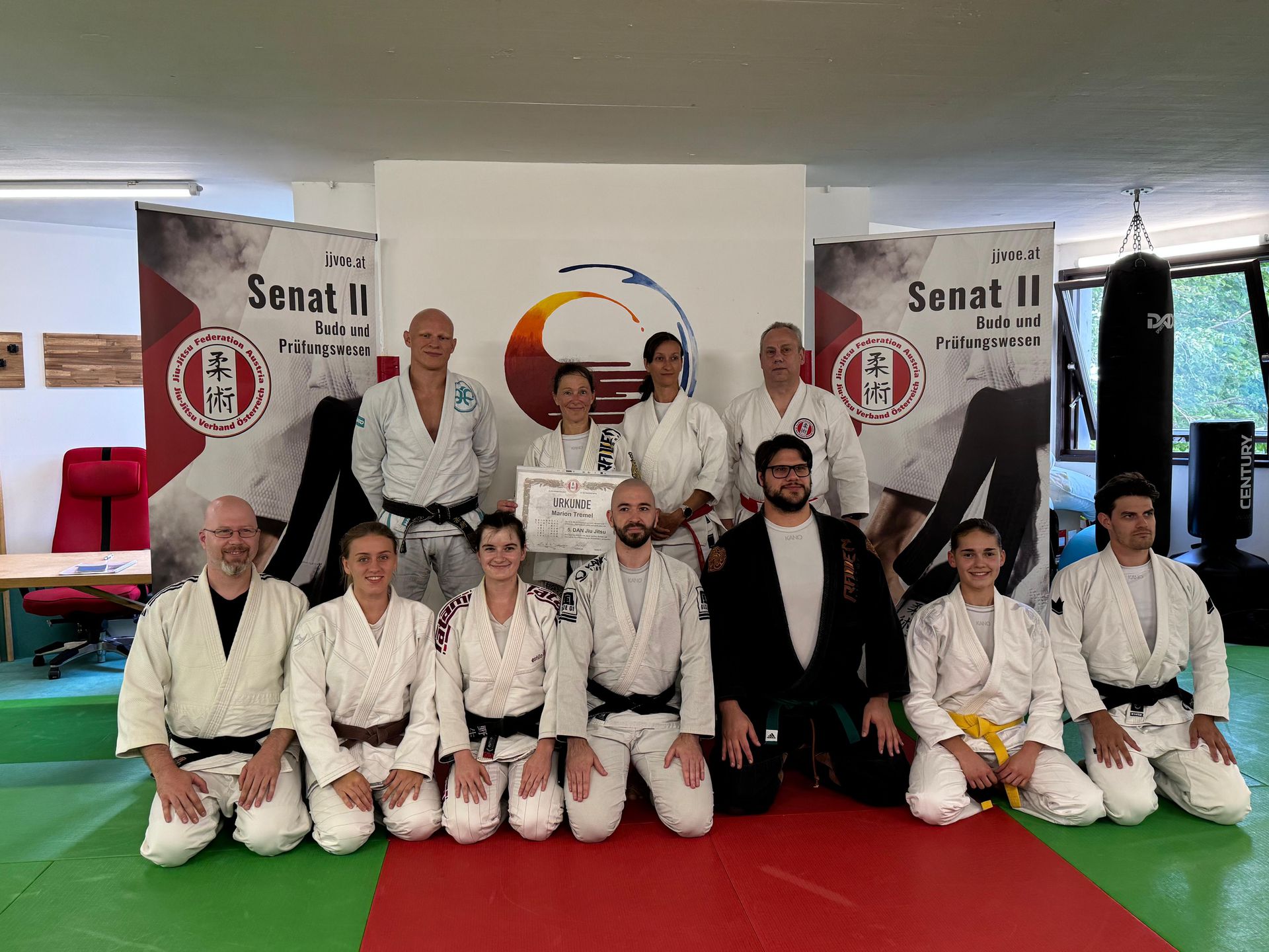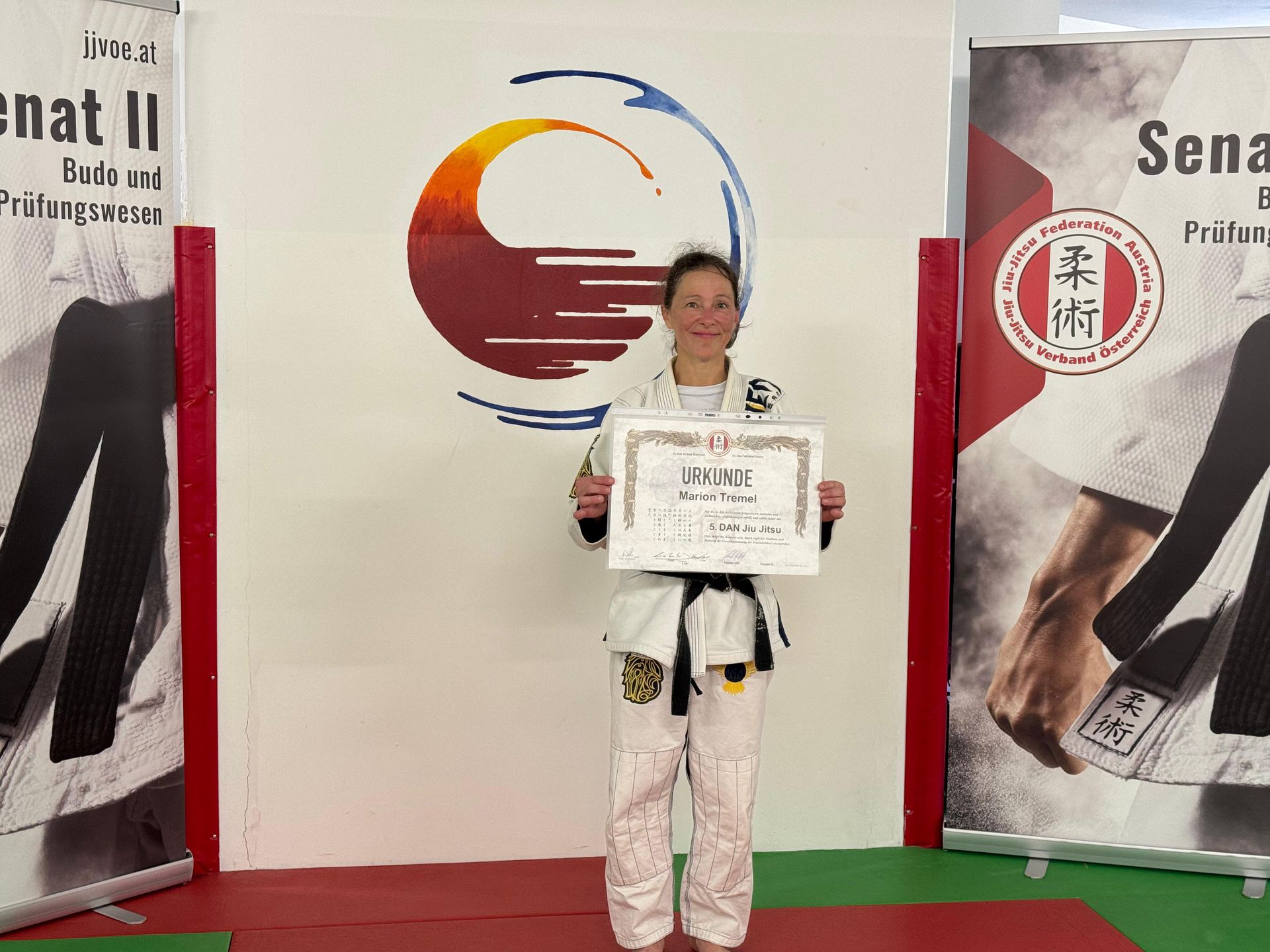 Am 6. September 2025 absolvierte Marion Tremel ihre Prüfung zum 5. Dan im Jiu Jitsu mit einer herausragenden Darbietung. Die Prüfung zeichnete sich durch eine beeindruckende Bandbreite an Techniken und Anwendungen aus verschiedenen Bereichen des Jiu Jitsu aus. Marion Tremel präsentierte ihr Können mit hoher Präzision und einem bemerkenswerten Verständnis für die Prinzipien der Kampfkunst.