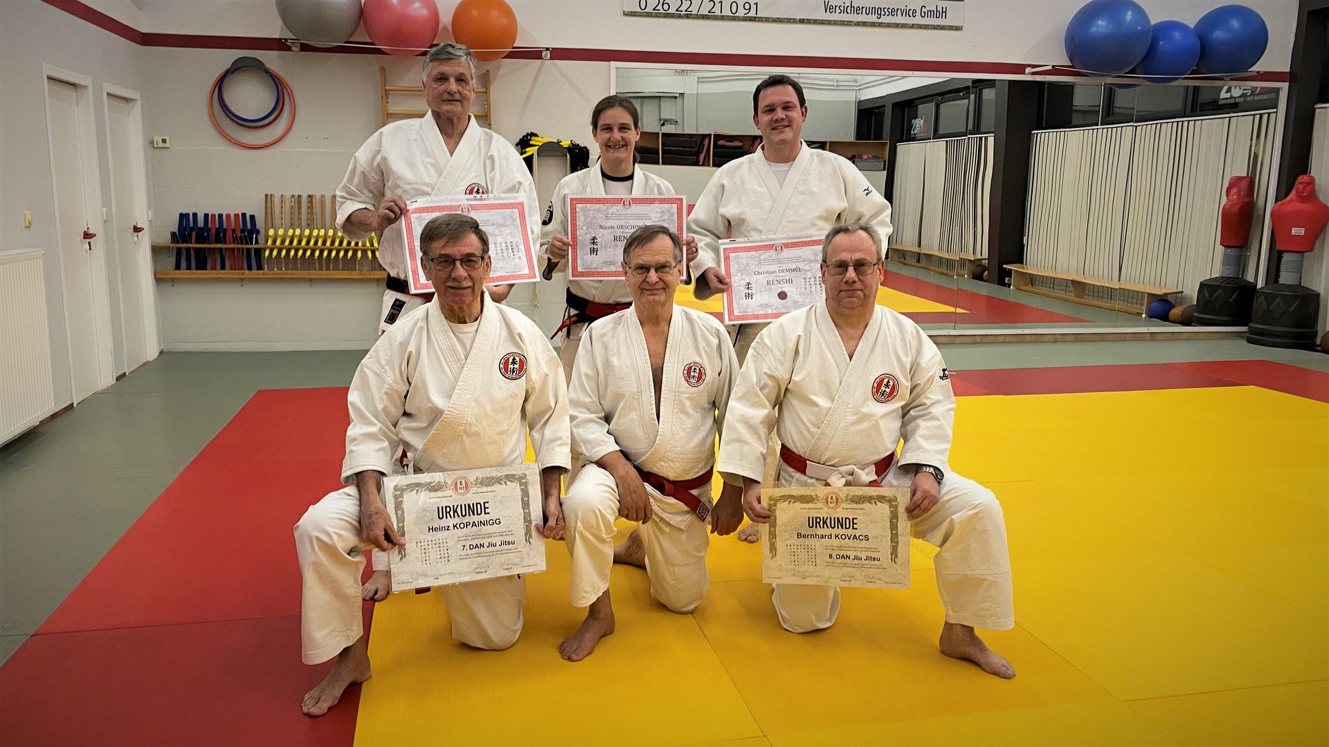 Der Vorsitzende der Technischen Kommission Dr. Franz Knafl überreichte die vom Senat 1 „Verleihungen und Titel“ der Technischen Kommission aufgrund besonderer Leistungen und laufender Jiu Jitsu - Lehrtätigkeit beschlossene Dangrade und Titel mit Dankesworten an die Geehrten.