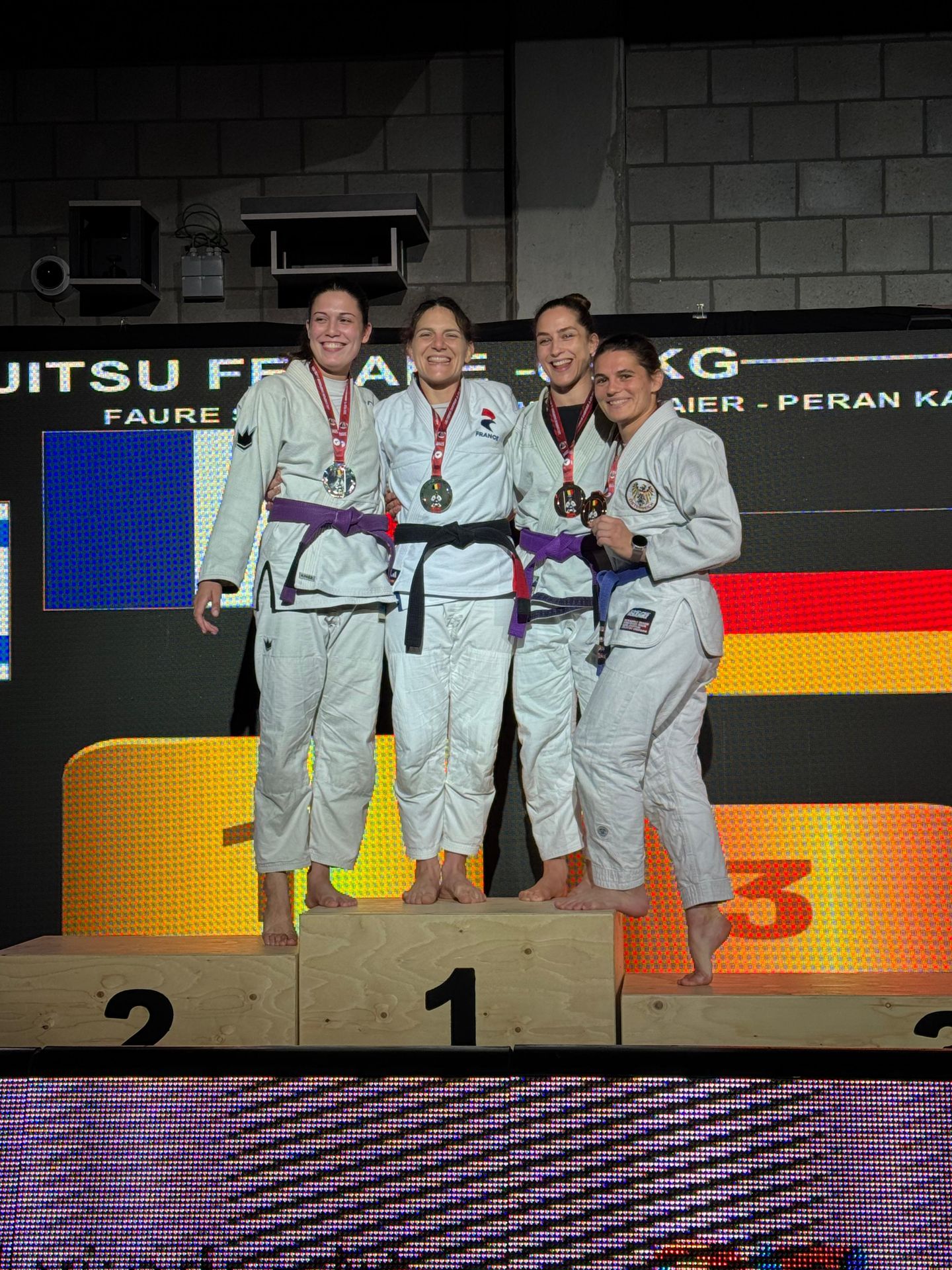 Bernadette Marsano (Jiu Jitsu −63 kg) und Noah Werner (Jiu Jitsu −77 kg) jeweils die Bronzemedaille. Nicole Altmann (Jiu Jitsu-52kg) erkämpfte sich den 5. Platz.