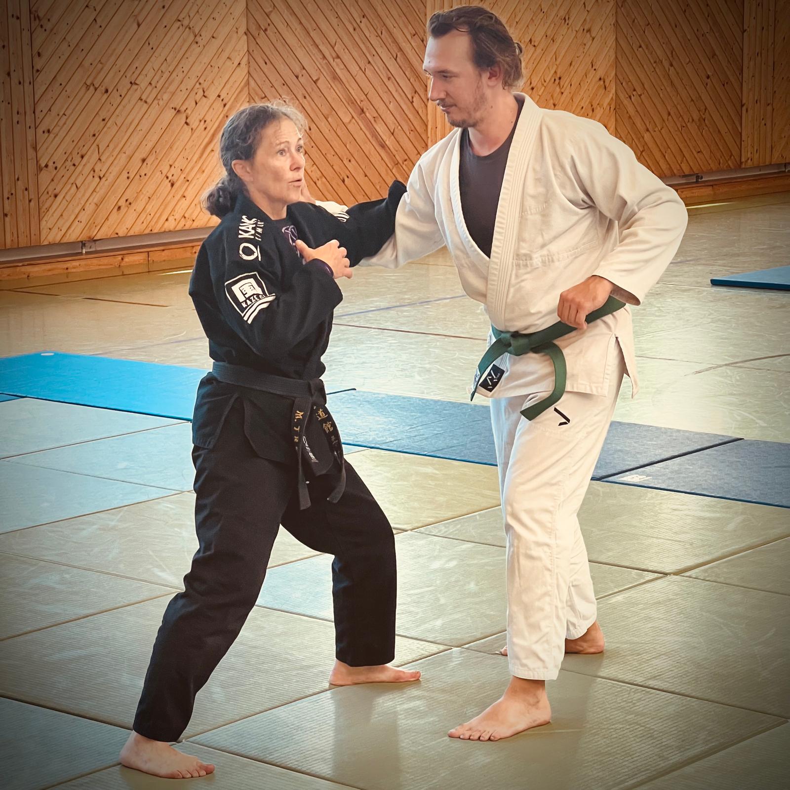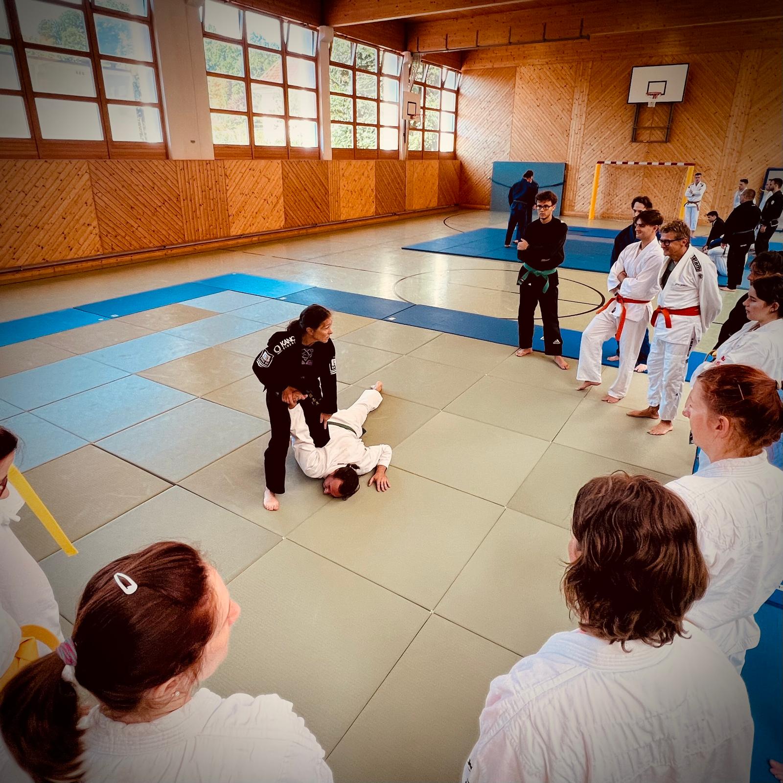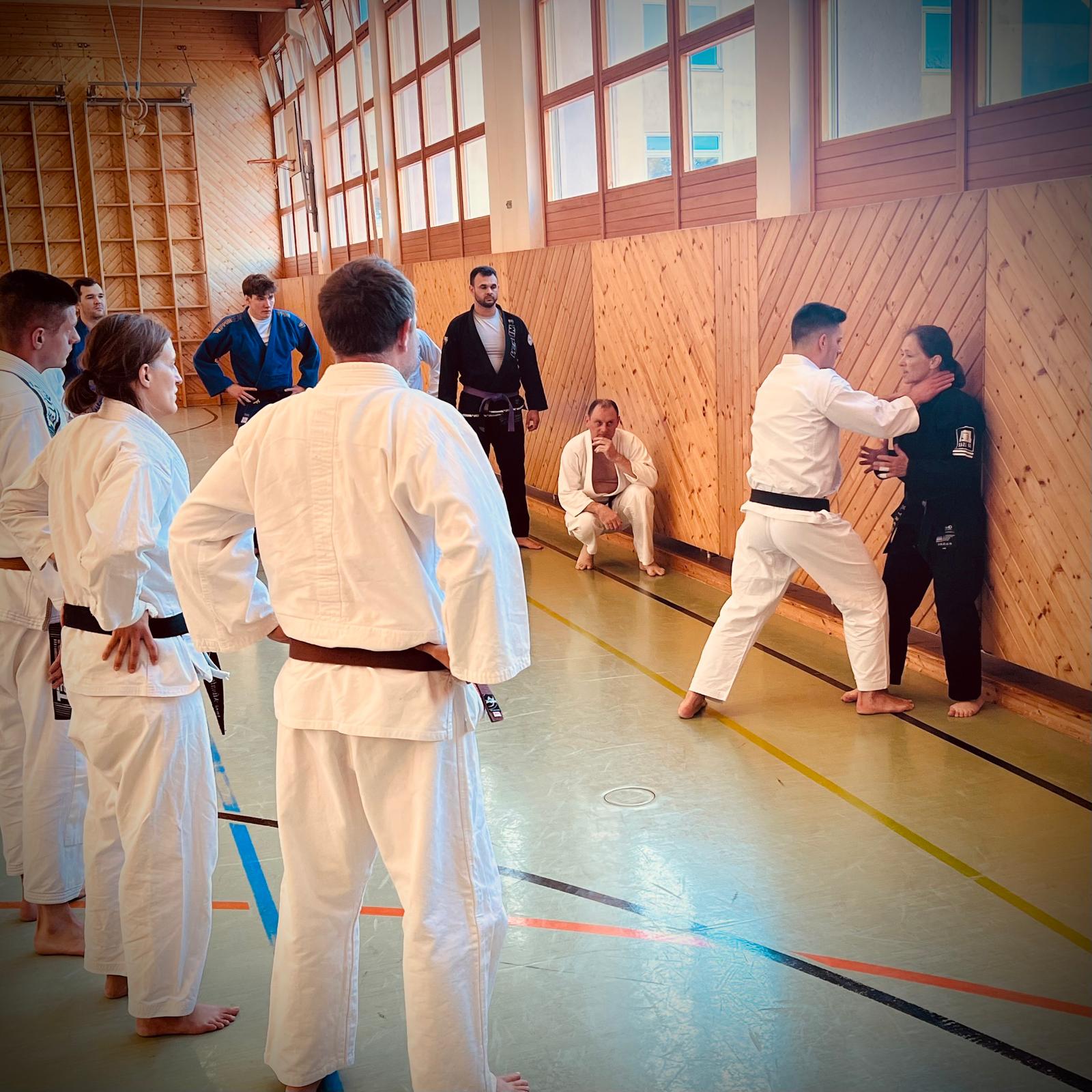 Am wohl letzten Wochenende 2025 mit sommerlich heißen Temperaturen verbrachten knapp 30 motivierte Jiu-Jitsuka ihre Freizeit auf der Matte. Beim alljährlichen Jiu-Jitsu Lehrgang des JJVOÖ am 20.09.2025 in Bad Schallerbach zeigten Franz Knafl (9. Dan) und Marion Tremel (5. Dan) ein breites Spektrum an interessanten – wenn auch schweißtreibenden – Techniken im Bereich der Fingerhebel und der Verteidigung gegen größere Angreifer.